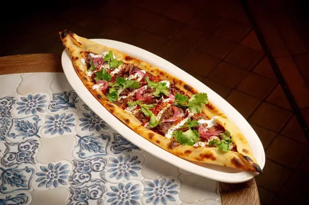 Пиде с ягненком и йогуртовым соусом