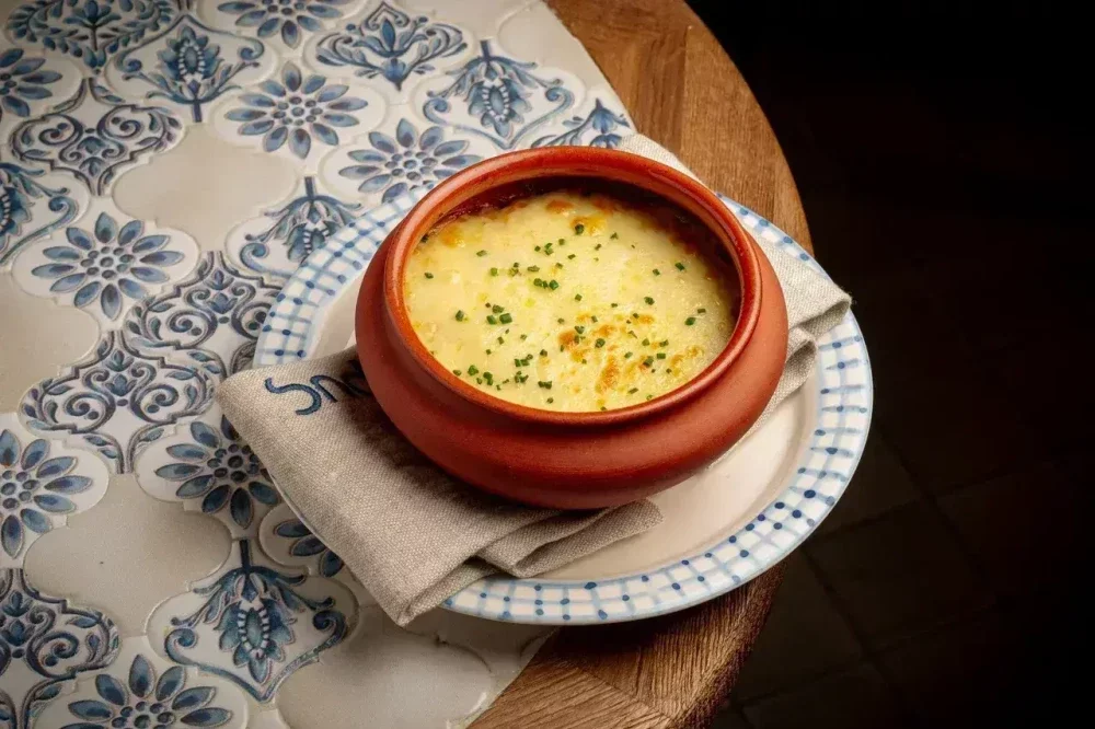 Сердце греческой кухни. Нежные слои запеченных баклажанов и ароматного мясного фарша, укрытые картофельным пюре. Запекается под золотистой сырной корочкой с тройной сырной смесью и нежным соусом бешамель.