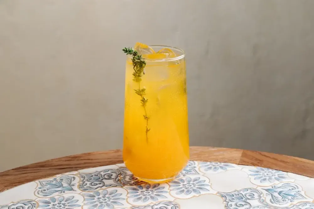 Освежающий домашний лимонад с яркой облепихой и лёгкими пряными нотами тимьяна. Сбалансированная кислинка и натуральная сладость создают насыщенный и бодрящий вкус.